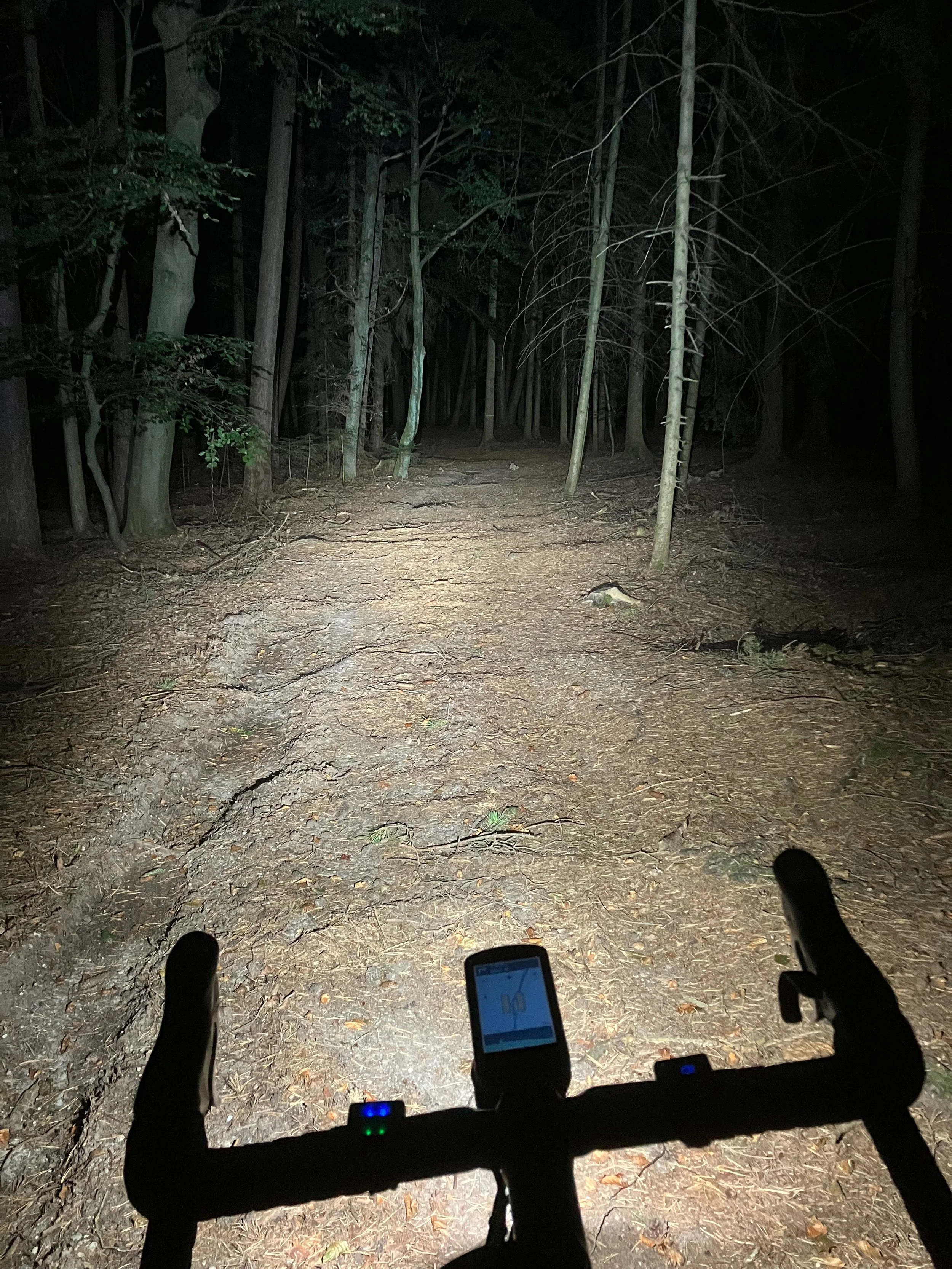 Broad front light plus helmet light at pitch-black night. That works!!!